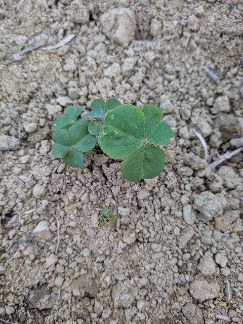 後來我自己查了一下資料,才知道原來它叫做球根酢漿草。仔細觀察後發現,它的根部深淺不一,有的埋得很淺,有的卻很深。我猜,埋得比較淺的可能是剛生成的,而那些埋得很深的,可能是之前翻土時被帶到更下面去的。