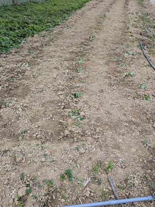 地瓜已經種下去一個多星期了。雖然這段時間都有固定三、四天澆一次水,但我每天看著田畦,還是覺得它們一點生氣都沒有,心裡多少有點擔心。