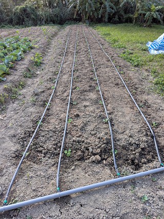 今天我在田裡種下一整個田畦的高麗菜。