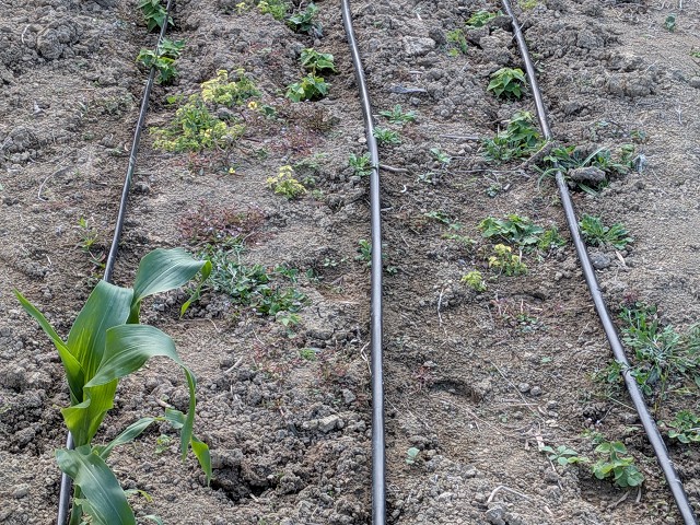 像照片中的這種雜草,一定要連根拔除,只要留下根部,很快又會重新長出來。蹲在田裡,一株一株慢慢拔,手痠、腰也痠,但也只能這樣一步一步來。